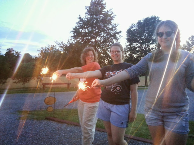 Made it down 95 without a hitch to Cherry Hill RV Park. Had a late lunch in their great cafe, enjoyed a swim with the girls (even fit in a nap) and just relaxed and laughed for a good bit. Caught a photo of the girls playing with sparklers. Looking forward to touring a bit of DC tomorrow.